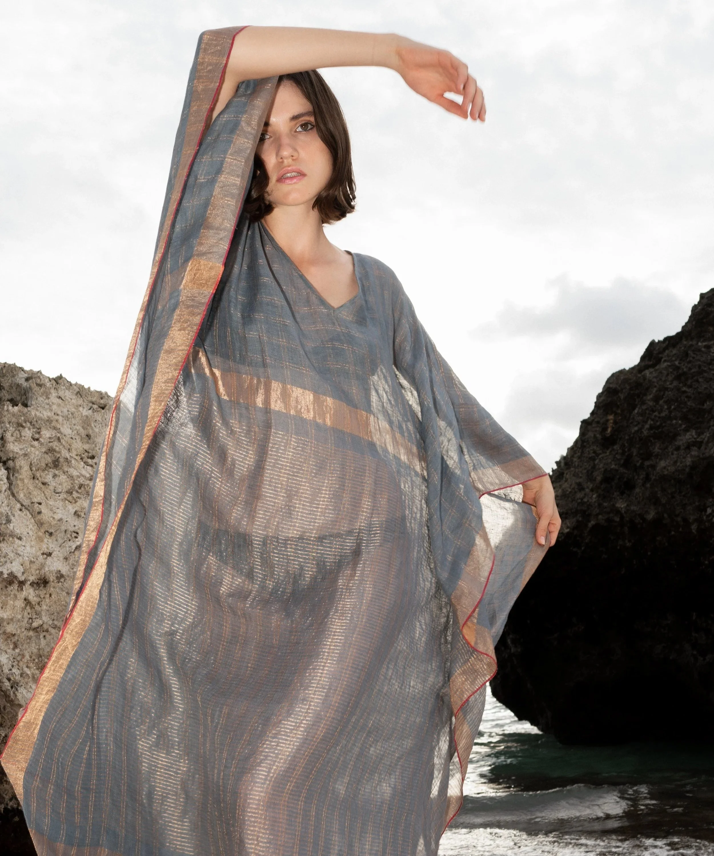 Woven Linen Kaftan Dress